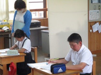 6年生は、イヤフォンを付けて集中して聞き取りをしていました。