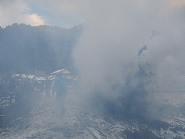 その美しい光景の中で、直瀬地区のどんど焼きがありました。