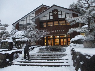 子どもが登校する前に、教頭先生が玄関先の除雪をしてくれました。