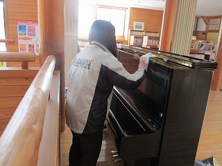 本校でお世話になっている音楽専科の先生やピアノが弾ける先生たちが、いつも丁寧に扱い、丁寧に演奏をしてくださっています。そのため、どこにも異常はなく、古くなった部品を少し交換した程度でした。