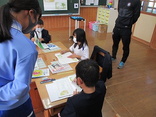 小学校では、いろいろな授業の支援を体験してもらいました。