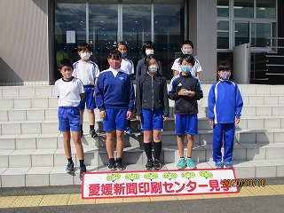 まず訪れたのは愛媛新聞印刷センター。入り口で記念写真を撮影して玄関に入ると、「ピント君」がお出迎えしてくれました。