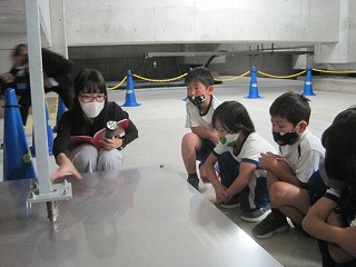 まず、研修室に入って、配付資料やお土産の説明を受けました。そして、会社の概要の説明の動画を視聴し、その後、低学年と中・高学年の二班に分かれて社内の見学をしました。