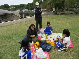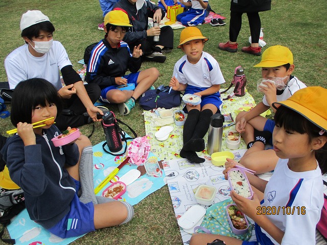 見学後は、今年もえひめこどもの城に移動しました。昨年度は雨のため、「あいあい児童館」の中でしか過ごせませんでしたが、今日は気持ちのよい秋空の下、広場でお弁当を食べることができました。