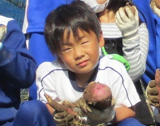 見事なお芋を掘り出す子がたくさんいました。植えた苗の半分近くがすぐに枯れてだめになってしまっていたから、ほかのつるの出来を心配していたのですが、昨年度よりはるかに豊作です!