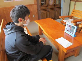 午前中に伝えていた時間に、子どもたちはタブレットの前で待ってくれていました。少し照れくさそうな表情が画面に映っていましたが、久しぶりの授業にみんなうれしそうでした。率先して教材文の音読をしたり、先生の「誰か答えてください。」との問いかけに、「はい!」と声を上げて元気に答えたりする子がいました。