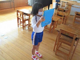 幼稚園の2人は、体育館でダンスの練習を終えて幼稚園に帰るところです。