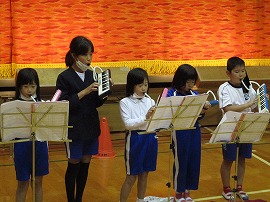 小学生は、今日も合奏「夜に駆ける」の練習をがんばっています。