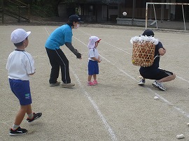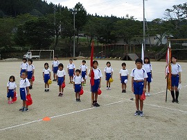 雨のため、体育館で入場の整列の仕方と行進の仕方の確認をしました。幼稚園の2人も、元気に行進しています。