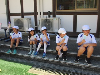 とても暑い午後でしたが、運動場でやる!という子どもの希望を尊重して、給水や休憩だけはこまめにとらせながら、青空の下で汗だくになりながらのおよそ1時間、子どもたちだけは元気に走り回りました。