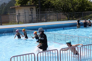 先週の木曜日、朝からの冷たい雨で実施できなかったプール開きが、今日ついにできました!