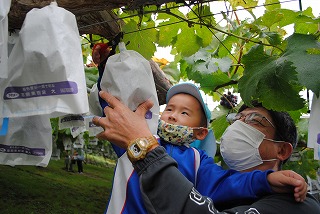 幼稚園では今日ぶどう狩りがありました。昨年度に引き続き、畑野川地区の竹森ガーデンさんにお世話になりました。