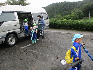 久万高原町のマイクロバスの運転手さんは、感染予防のための消毒液を用意してくださっていました。乗車前にちゃんと消毒してバスの中へ。園児がマイクロバスに乗るのは実におよそ1年ぶりとあって、バスの中ではおおはしゃぎでした!