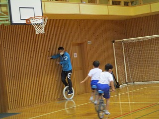 今日、小学校では一輪車講習会が催されました。この講習会は1年間のうち全国でもわずか6つの小学校でしか開催されないとのこと。そんな実に貴重な機会をいただいたのです。